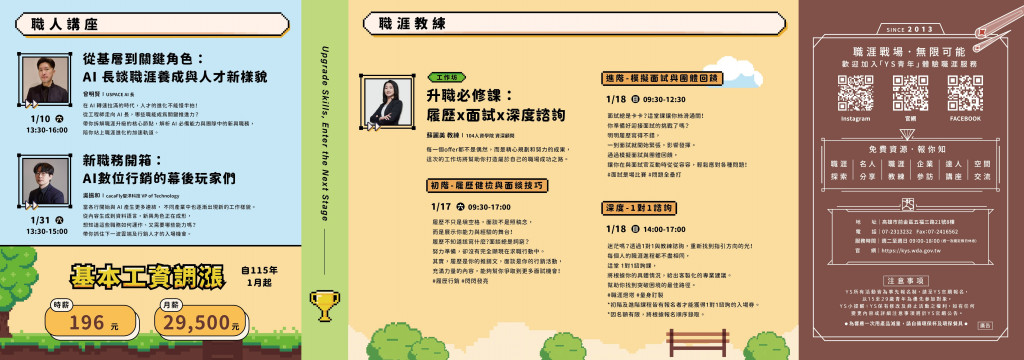 一、YS提供「職涯諮詢」、「職能提升」、「求(轉)職及創業