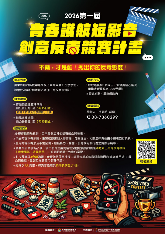 二、旨揭競賽以反毒宣導為主軸,鼓勵學生透過短影音創作傳遞正向觀念。